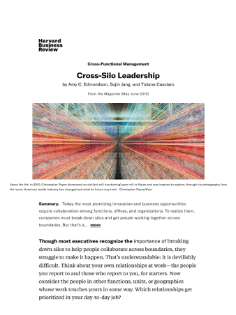 “Cross-Silo Leadership” by T.Cacharo, E. Edmondson, S. Chan — about what teamwork really means